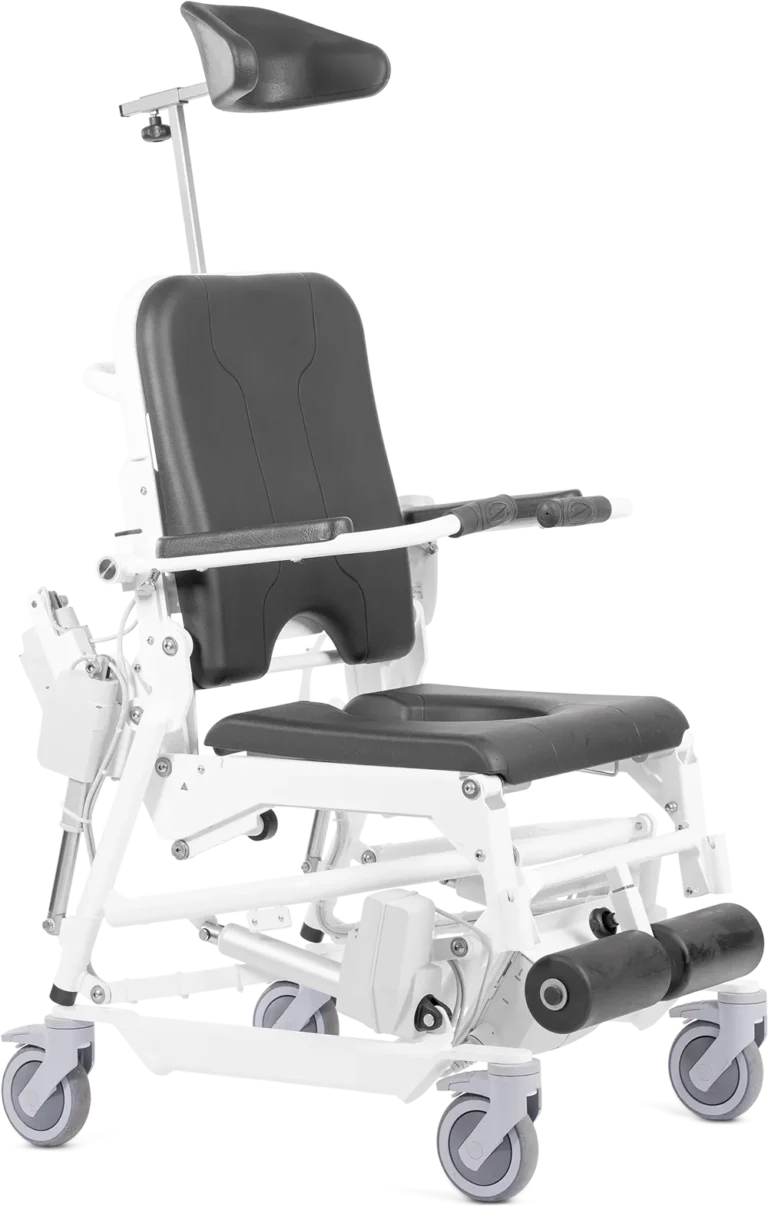 Durk ondervond het douche- en toiletbezoek altijd als onaangenaam. Sinds hij de Solid douche-toiletstoel gebruikt voelt hij zich toch wat prettiger. De stoel is speciaal ontworpen voor mensen met overgewicht waardoor ook hij eindelijk stabiel en comfortabel kan zitten. De zorgverlener kan hem ook bijna op ooghoogte aankijken en zo eenvoudiger een praatje maken. Dit stelt Durk gerust.